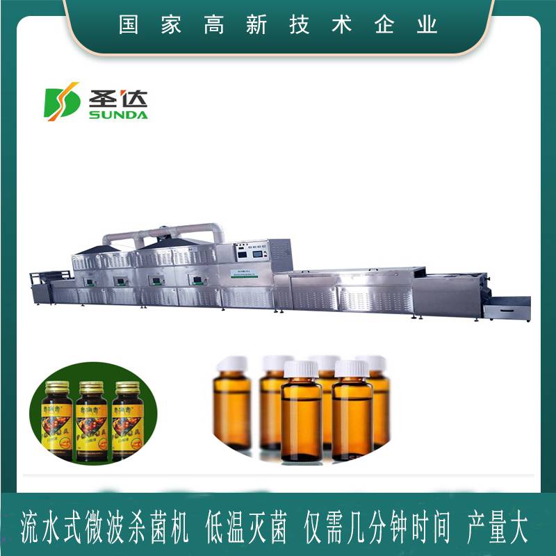 采用微波对口服液进行,一般只用时间2—3分钟,温度70—80度,每小时处理量为300升(10毫升/瓶)。且此外采用微波杀菌还避免了使用常热力杀菌造成口服液中出现沉淀现象。